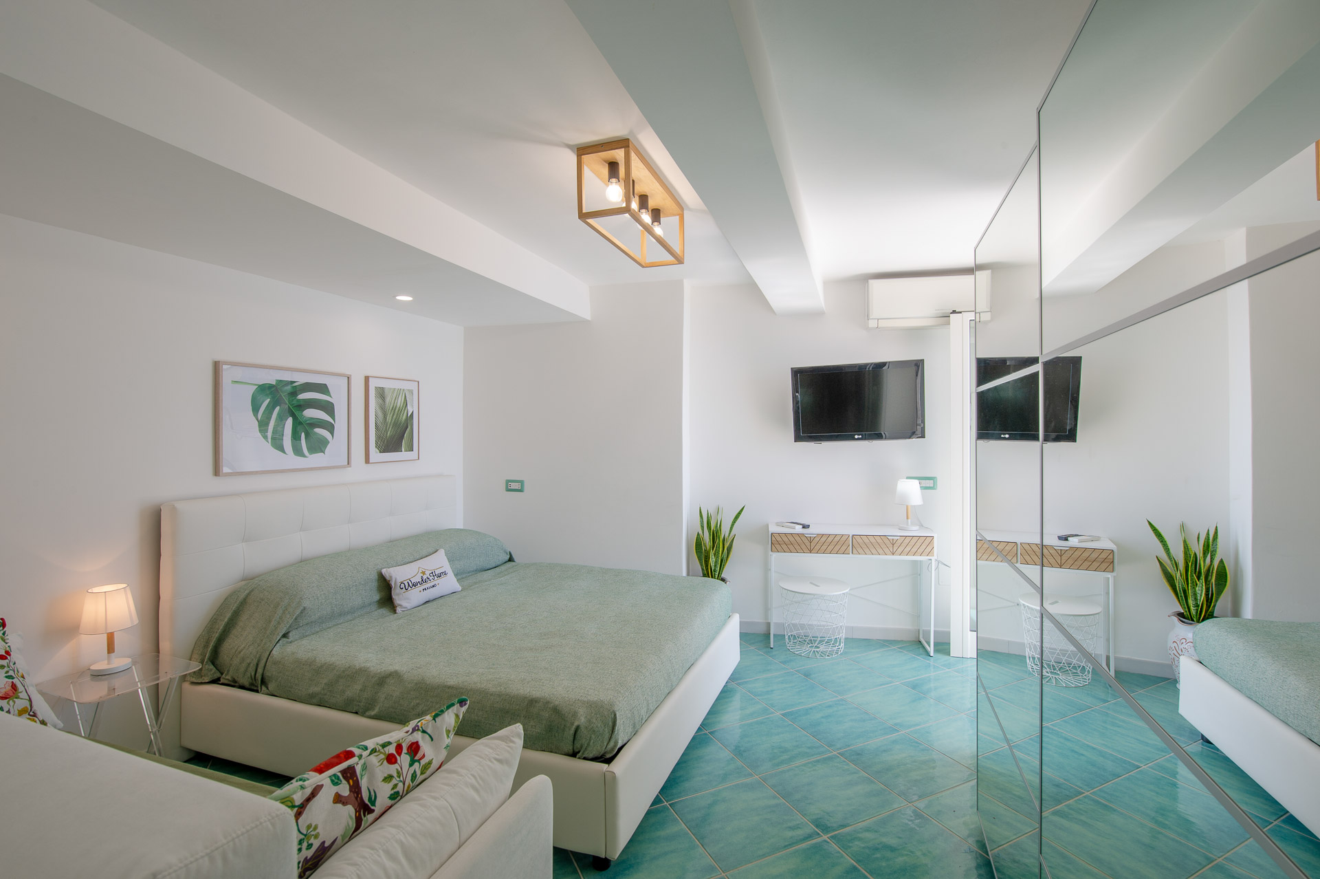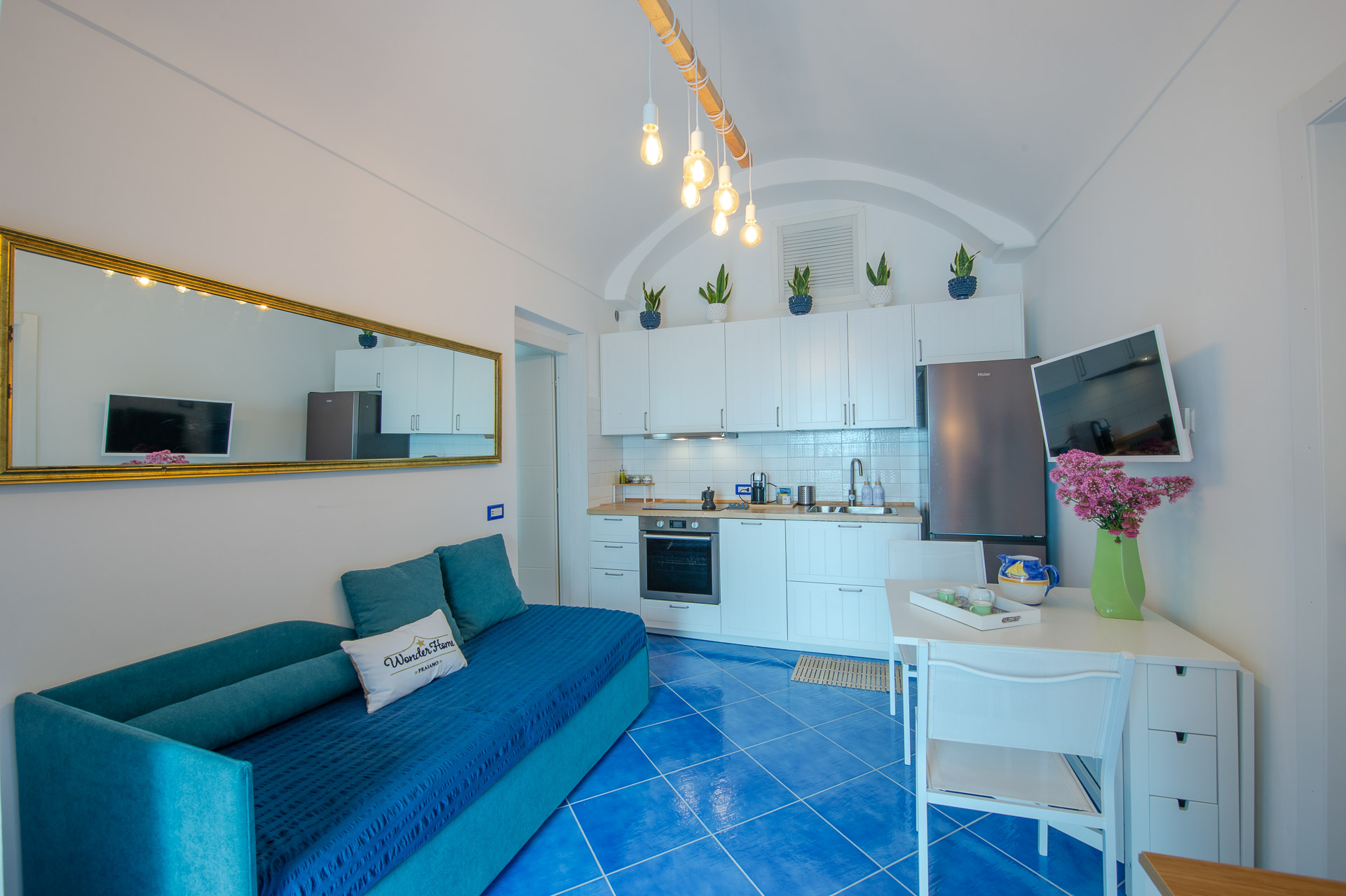 Villa Wonder Home Praiano can be rented in its entirety for up to 7 guests or as two separate units; the first accommodating 4-5 guests and the second for 2. Each option ensures privacy and comfort with private bathrooms, bedrooms, kitchenettes, and terraces, providing a personalized experience for every guest.