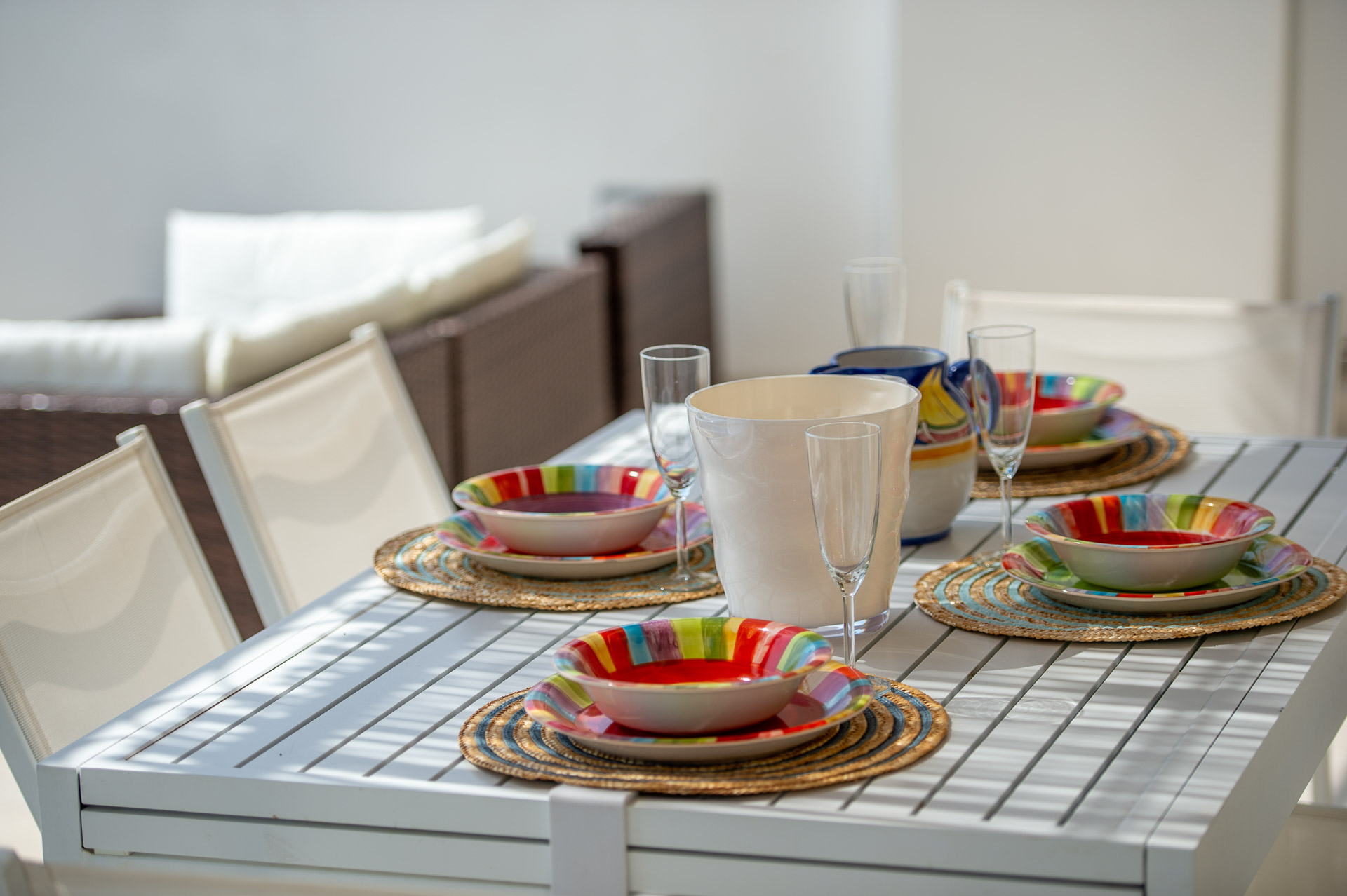 • Dining Table: A small yet charming wrought iron table with chairs, ideal for outdoor meals and aperitifs. Here, you can enjoy your meals while immersed in the beauty of the coastal landscape.